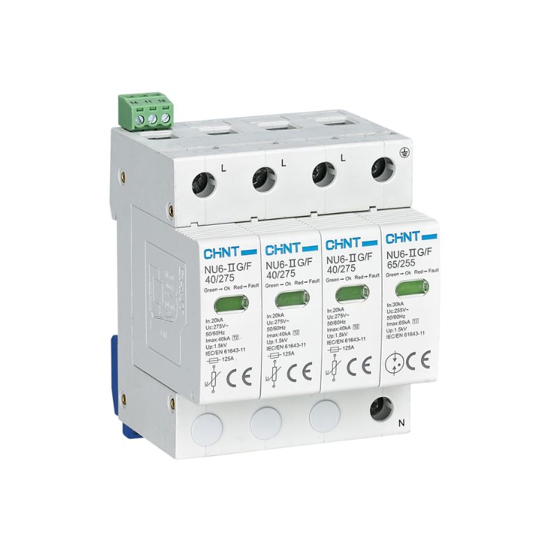 Ofrece una capacidad de descarga nominal (8/20 µs) de 20 kA entre L-N y 30 kA entre N-PE, alcanzando una capacidad máxima de descarga (8/20 µs) de 40 kA en L-N y 65 kA en N-PE, proporcionando una protección eficaz y fiable ante picos de sobretensión.