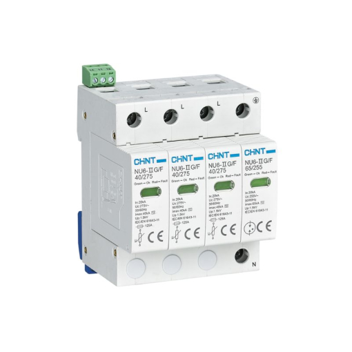 Intensidad máxima de descarga Imax (8/20 µs): 40 / 65 kA (L-N / N-PE).